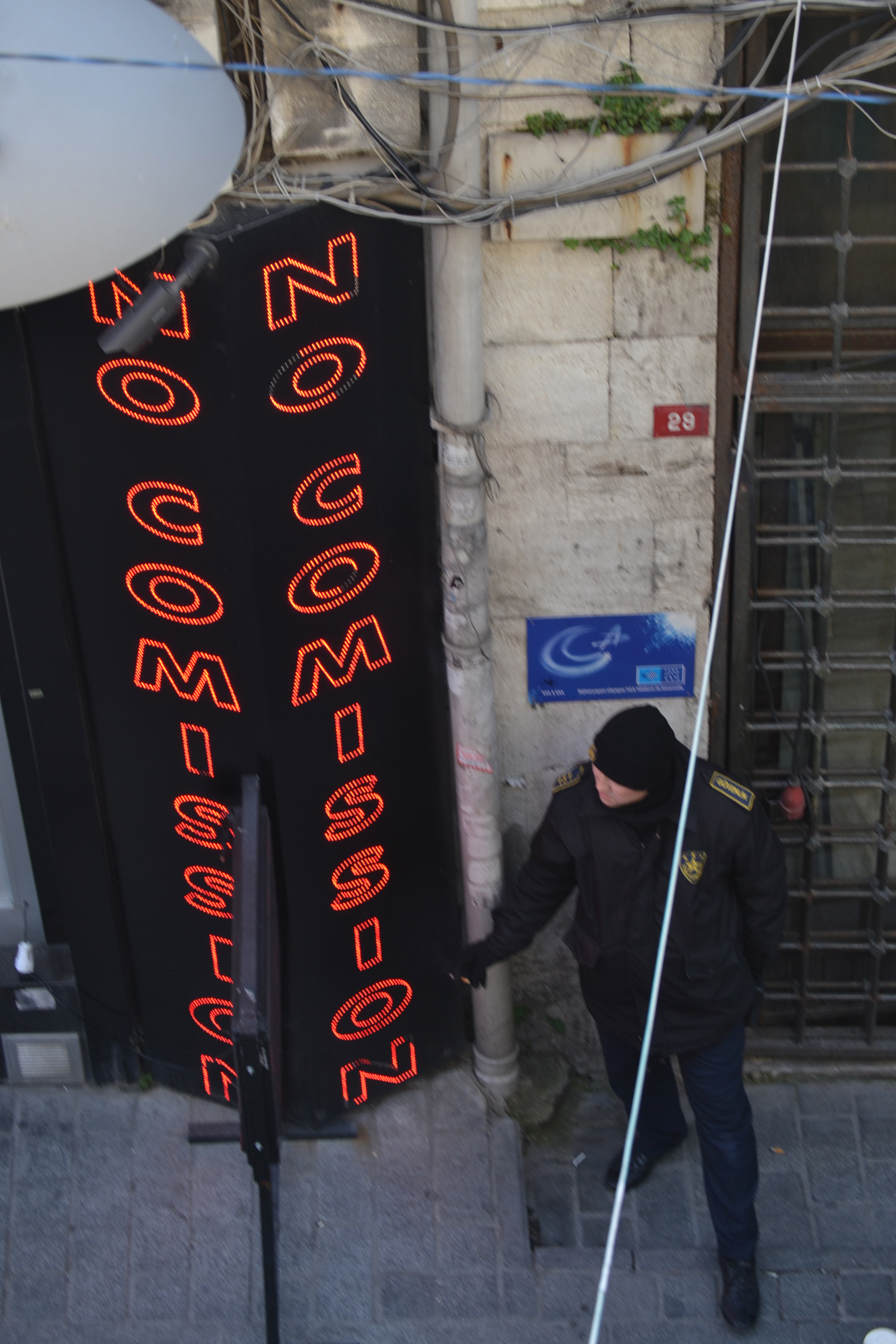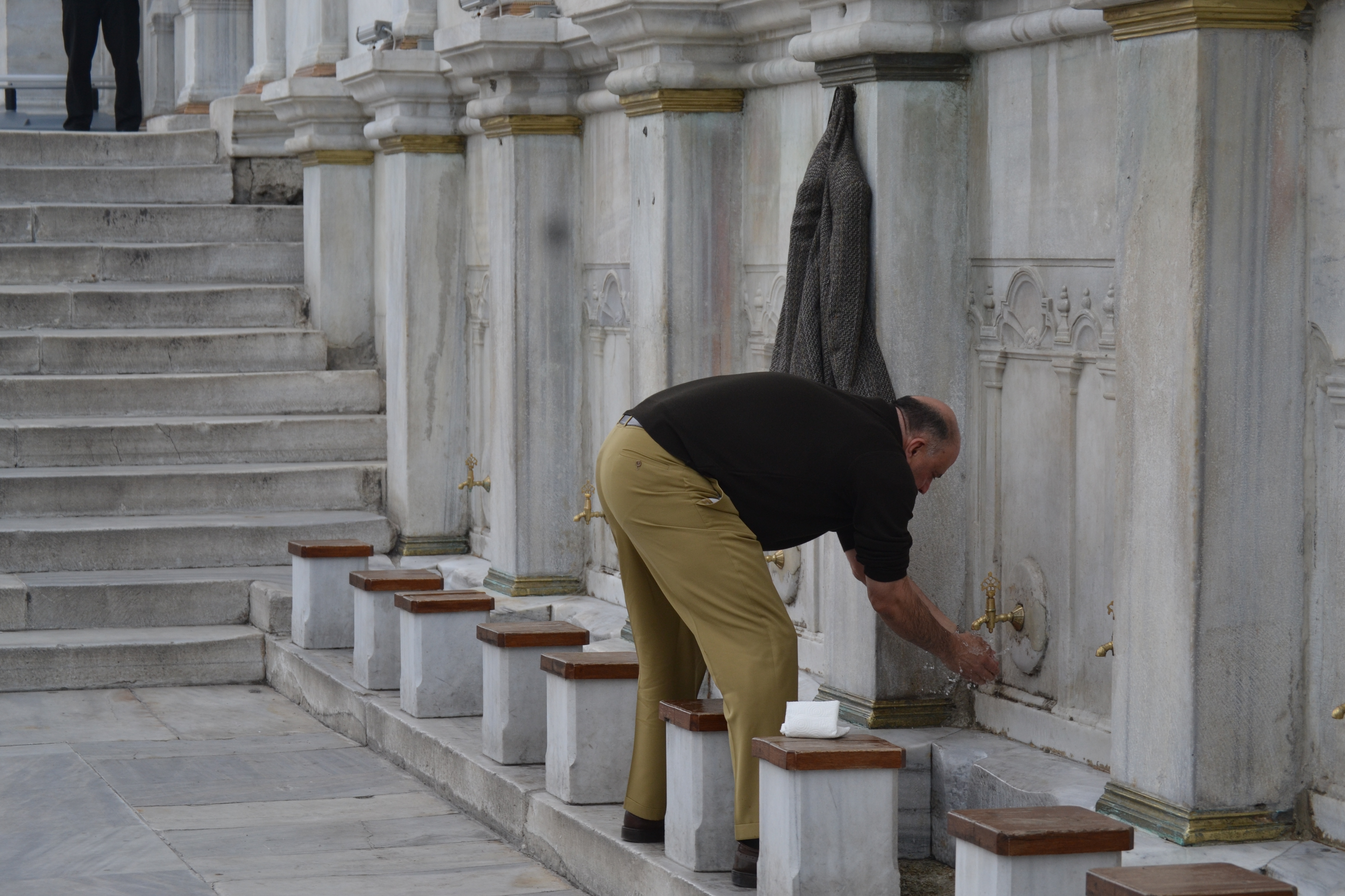 My only mission was to enjoy the music, look around, maybe take some photos and to exchange some dollars for Turkish Lira or “Tee Ells, mate” as one Sydney-sider at my hostel had corrected me. Following only a trail of currency exchange bureaus that seemed to each offer a more favorable rate than the last, I wound up at a side gate of Istanbul’s Grand Bazaar. I walked around the inside and got tired of it quickly since I didn’t plan on buying anything. Still, I do have to say I was impressed by how much Hindi every random Turk threw my way. Stiller, I was much happier circling the bazaar from the outside and taking photos of the people who worked there running to and fro, people of all ages both male and female. I saw one young boy running through a market street while a shopkeeper chased him angrily until the grey-haired man grew tired and cursed behind him. Where was I – Agrabah? Despite the Artful Dodgers, I also saw plenty of shopkeepers offering prospective customers fresh bread and hot tea. I found a mosque on the edge of the market to one of it’s countless sides and laid back there for a while. Many a man came out to wash his feet. Not a woman did. I thought to wash mine but suddenly noticed a quiet removed stairwell snaking up behind the mosque. If it led me to the roof, I’d be able to peer directly into the market through it’s open roof so I was excited to get up there and take some photos.